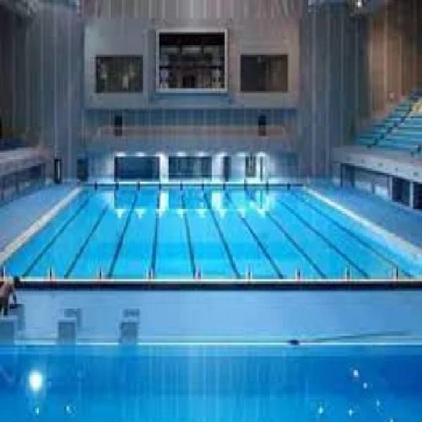 Commercial swimming pool constructed from FRP, featuring a height of 4.5 feet and a 50 L/h filter pump. Designed for efficient water supply from borewell.