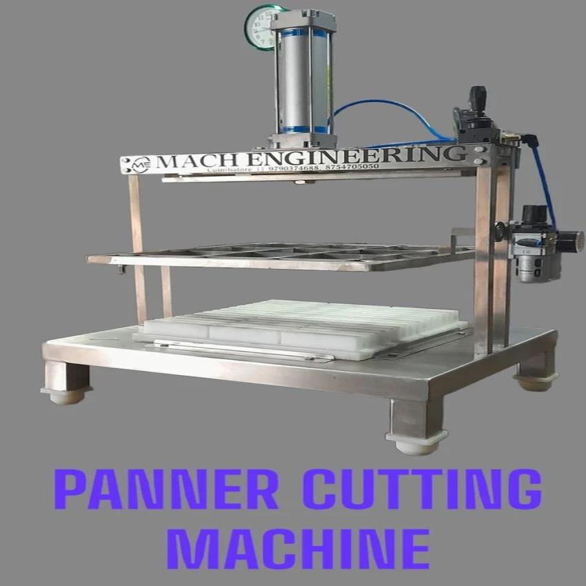 SS304 stainless steel paneer cutting machine with 250 kg/hr capacity. Customized design for commercial food processing operations.