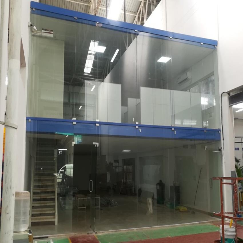 This plain transparent glass partition is designed for commercial use. It is available in transparent color and requires a minimum order of 100 square feet.