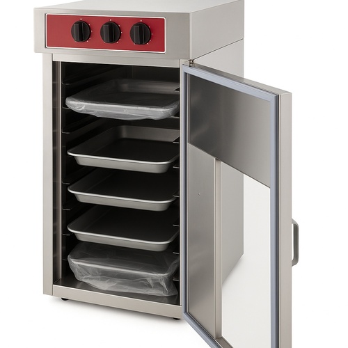 Silver SS proving machine for commercial use. Durable stainless steel construction ensures longevity. Ideal for professional baking applications.