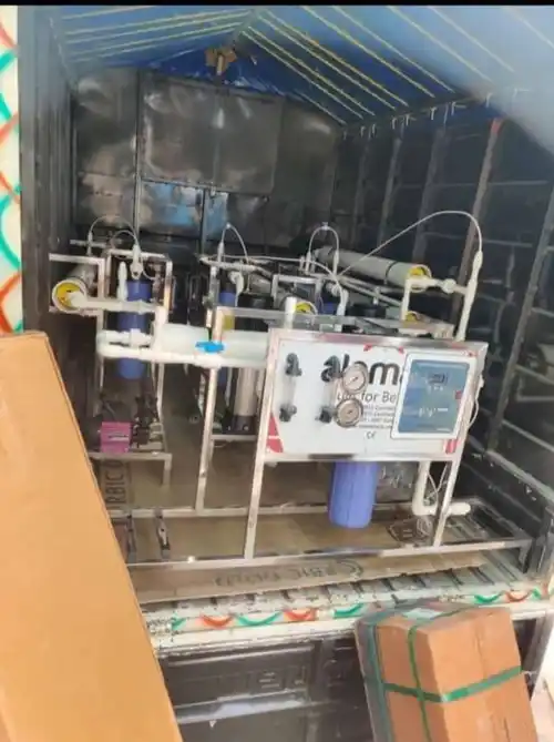 500 LPH FRP commercial RO plant with 50-55% water recovery rate, Vontron RO membranes, and activated carbon/sand media for water purification.
