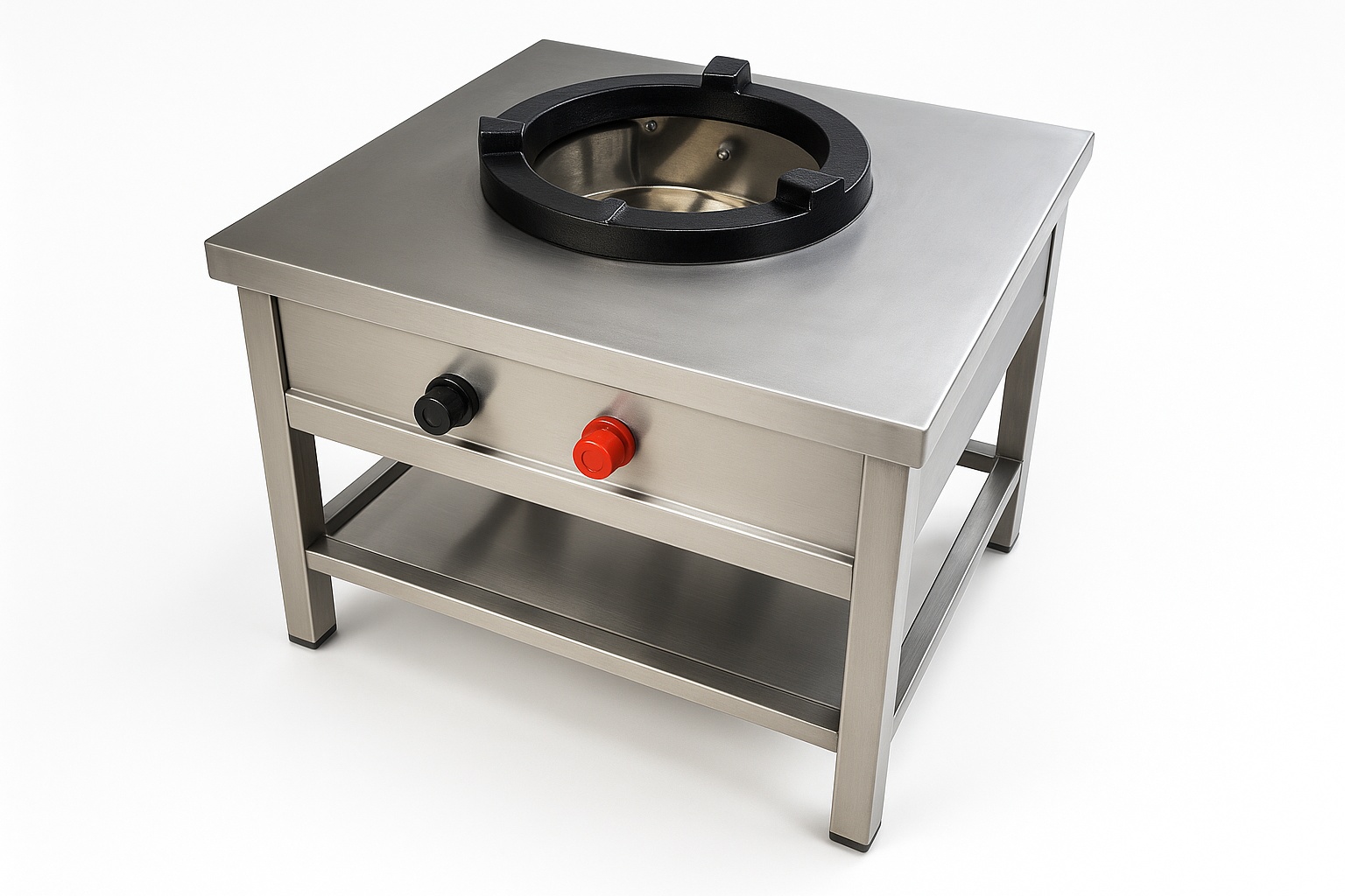 Durable stainless steel commercial gas stove with a high-power burner. Features SS 304 grade, manual ignition, knob control, and LPG power source. Rust and wear-resistant, portable design. Ideal for commercial use.