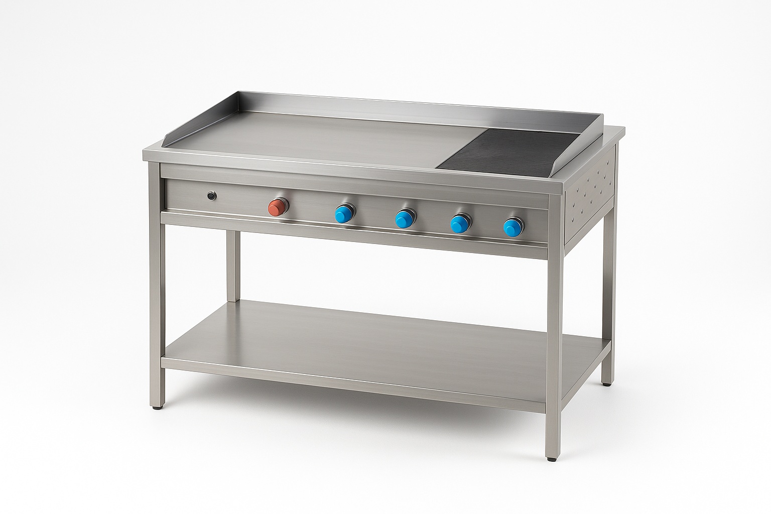 Portable automatic stainless steel chapatti plate. Features SS304 material, 5 knobs, and a 36x24x34 inch dimension. Ideal for commercial applications, with a 1-year warranty.
