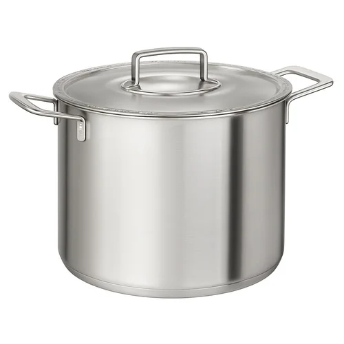 A standard stock pot designed for commercial use. Made from durable materials for high-volume cooking environments. Essential kitchen equipment for food preparation.