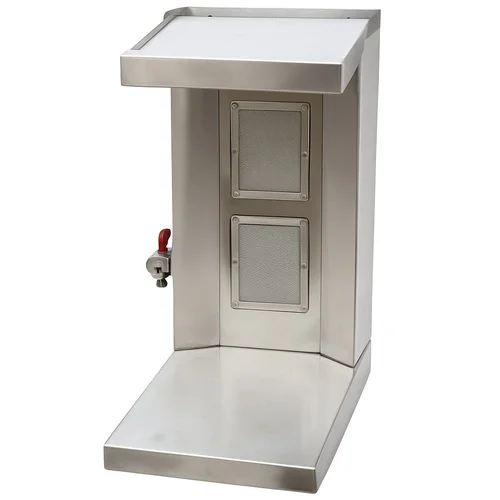 Commercial tabletop gas shawarma device. Operates on gas power. Designed for efficient shawarma preparation in busy kitchens.