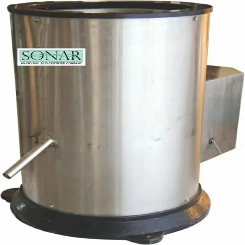 Automatic stainless steel dryer machine for commercial use. Features up to 50 kg capacity. Tilting machine design with silver body colour.