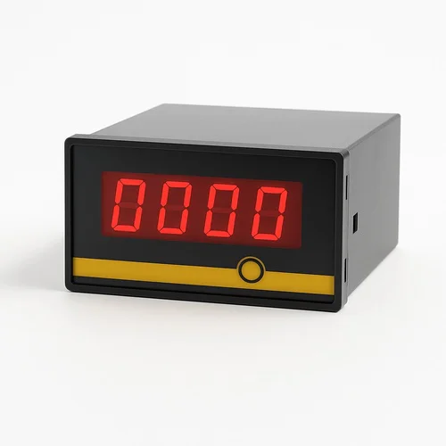 Small 4-digit display counter with a 1/2 inch seven-segment display. Maximum count of 9999, user selectable. Requires 230V AC power and 12V DC sensor supply.