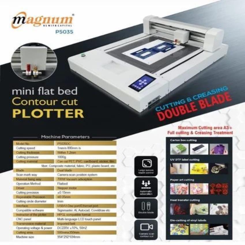 Compact digital flatbed cutter machine for precise digital cutting tasks. Efficiently handles various materials with digital accuracy. Suitable for small-scale operations.