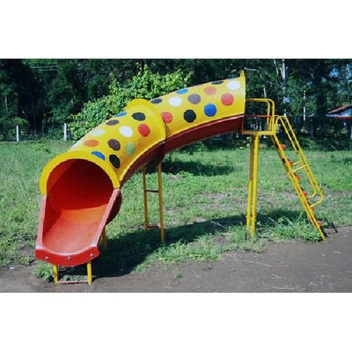 FRP Mini Tube Slide for ages 4-8 years. Features a 2.1M product height, 1.5M platform height, and requires a 3.5M x 4M area with a 5M x 5M safe play zone.