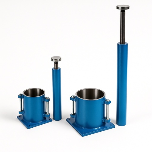 Industrial semi-automatic proctor compaction apparatus with 2250cc capacity and rammer. Constructed from polished SS material. Weighs 5 Kg. Available in blue.