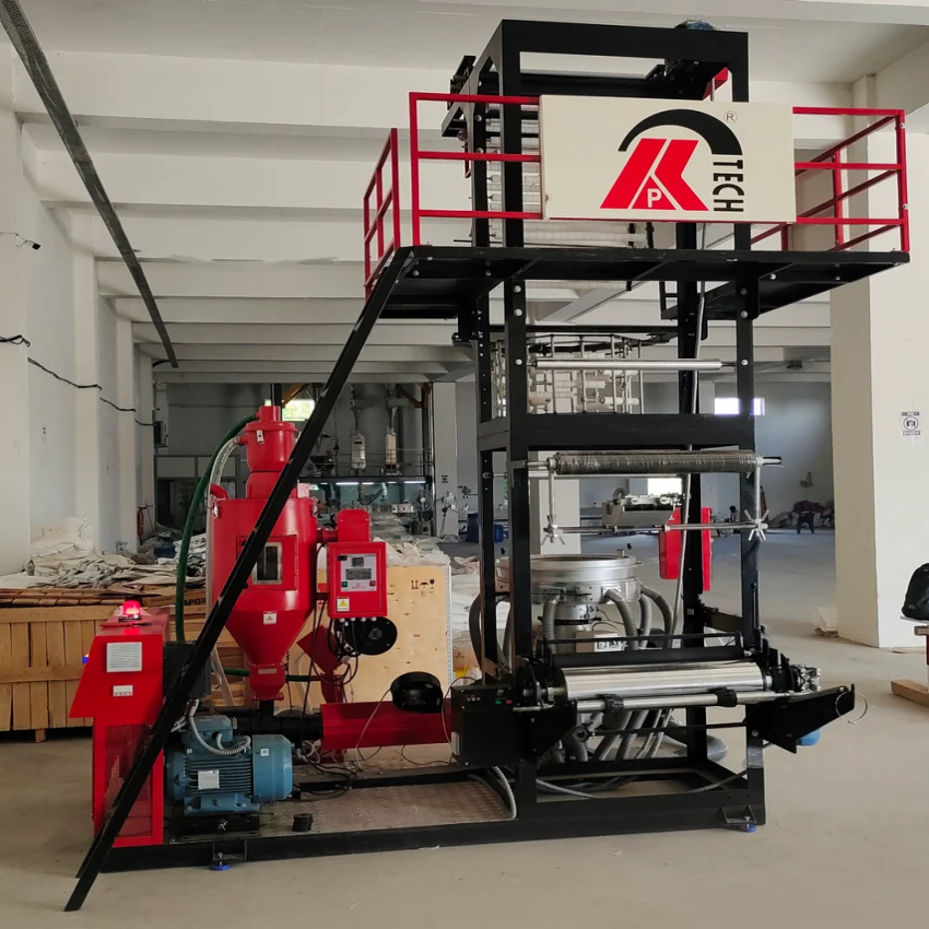 Compostable Blow Film Equipment for PLA, PBAT, LDPE, HM. Capacity up to 30 kg/hr, 20-100 micron thickness. 27kW input power, ISO 9001:2015 certified.