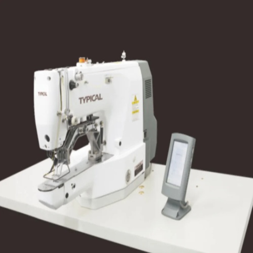 New, motor-operated mild steel bar-tacking sewing machine. Features up to 3000 stitch/min speed, over 4mm max stitch length, 36.5mm needle bar stroke, and DPX17 needle size. 220V power.