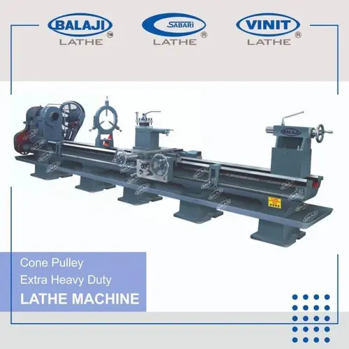Horizontal cone pulley lathe machine with 4 kW power and 43-inch center height. Features 1270 mm bed width and 6.5-inch spindle bore for precision machining.
