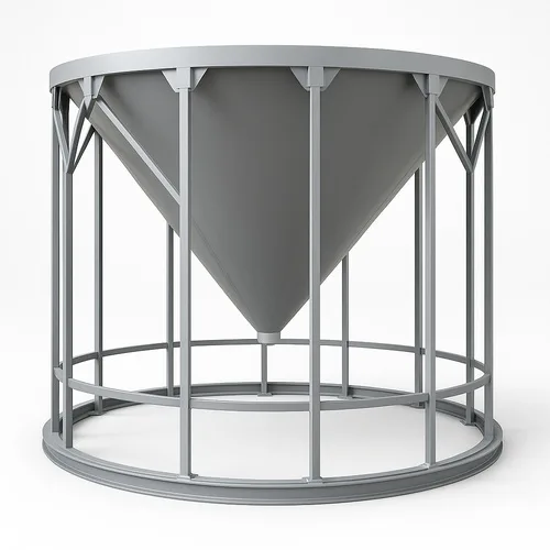 Cone type hopper grain storage equipment for weights 500 kg to 50000 kg. Operates on 440V with a 12-month warranty.