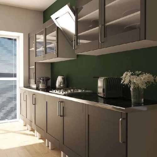 Customizable modular kitchen designs for residential applications. Offers modern aesthetics and functional layouts. Professional design services available for tailored solutions.