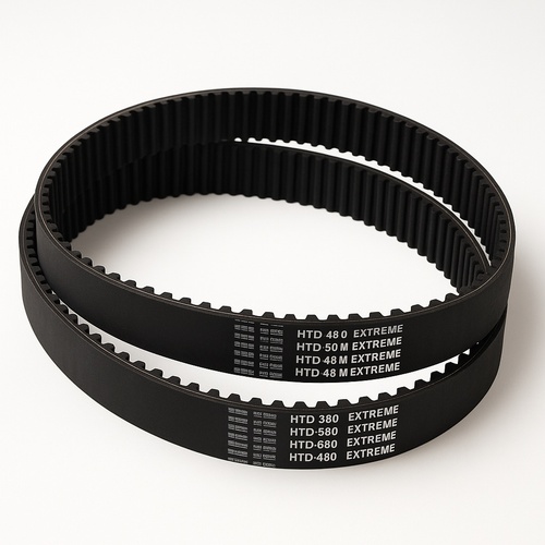 Black rubber open timing belt (OT) with single-sided teeth. Engineered for precise power transmission and synchronization in mechanical systems. Minimum order quantity of 1 piece.