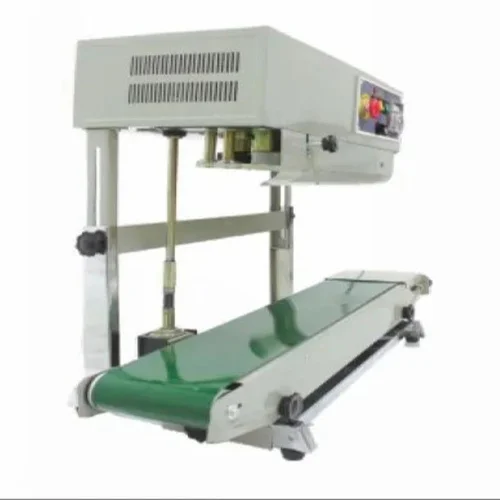 Automatic single-phase continuous bag sealer machine with 8 kg capacity, 220V voltage, and 50 Hz frequency. Constructed from MS, with dimensions of 17 x 34 x 12 inches and weighing 30 kg.