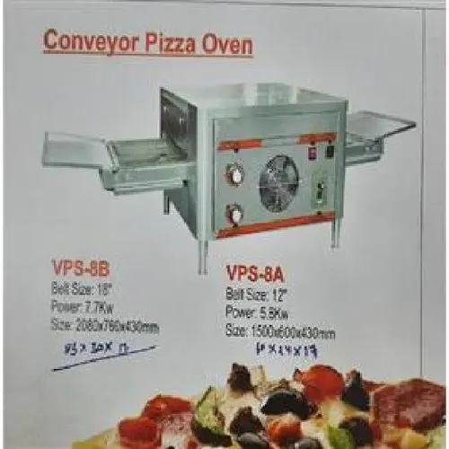 Stainless steel conveyor pizza equipment with an 18-inch belt. Size: 1500 x 600 x 430 mm. Electric power source.