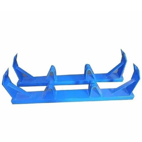 Durable blue metal conveyor roller stands with polished finishing. Ideal for industrial material handling applications. Designed for efficient and reliable operation in various settings.