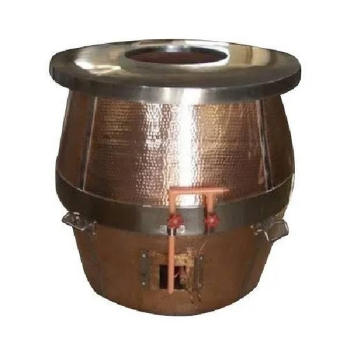Restaurant copper gas tandoor device for PNG fuel. Features one burner, four wheels, and a 37x35 inch size. Durable copper construction for culinary use.