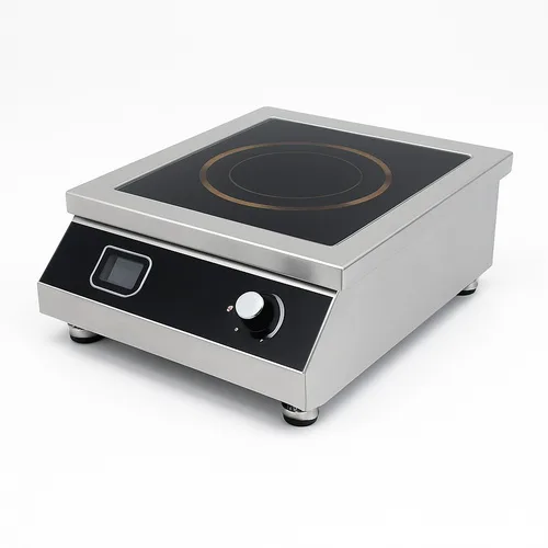 Countertop induction plate machine designed for efficient cooking. Compact and functional for various kitchen setups. Durable construction for reliable operation.