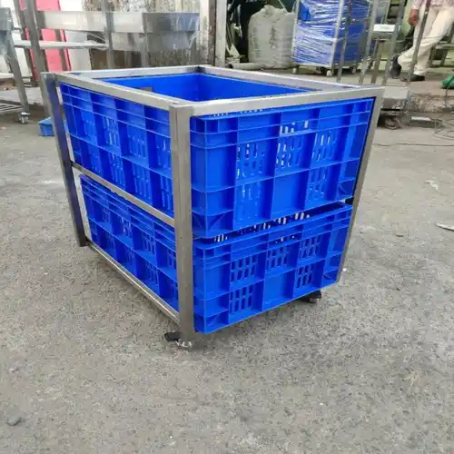 Under counter vegetable rack holding trolley with 80 kg load capacity. Chrome finish, corrosion-resistant, made in India with 4 wheels for mobility.