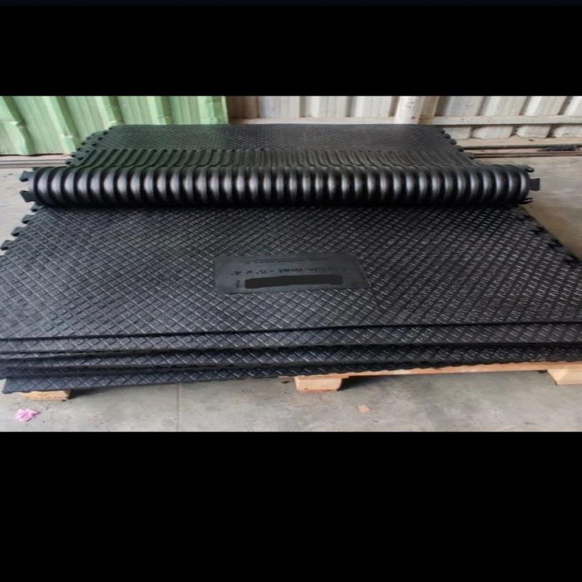 India-made black rubber cow mat, 6x4 ft, 12-25mm thick, diamond top pattern. Ideal for cow sleeping comfort, 30-34 Kg weight.