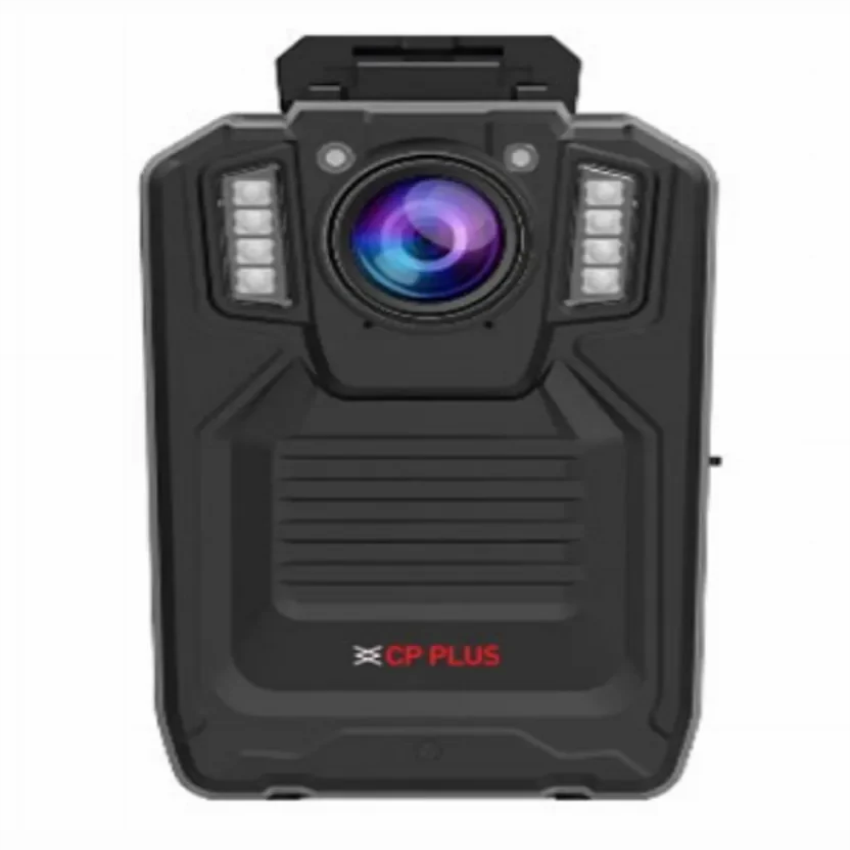 CP Plus Full HD body worn camera, CP-DBP-H20-P. Features 2MP camera, 110° wide-angle lens, and H.264 compression. 3000mAh battery, 10-15m range.