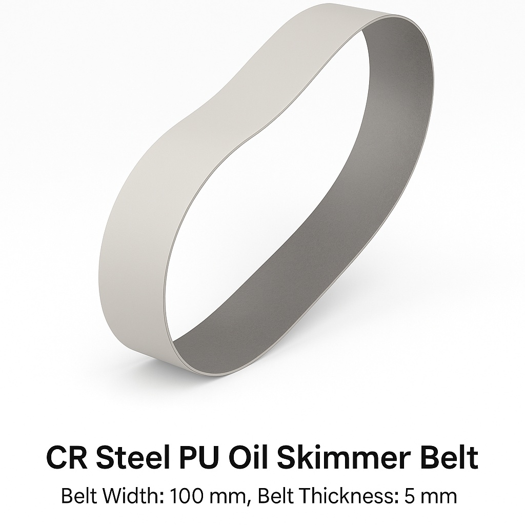 CR Steel oil-resistant skimmer belt, 100 mm width, 5 mm thickness, 6m length. Ideal for conveyor applications.