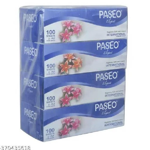 Creando facial tissue paper offers 2-ply softness. Each pack contains 4 units, with each sheet measuring 19.5 x 20 cm and providing 100 pulls for convenient use.