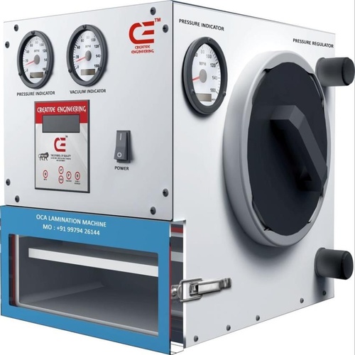 Fully automatic CE-102 OCA lamination machine for broken display repair. Supports up to 9-inch paper size. Made in India with a 1-year warranty.
