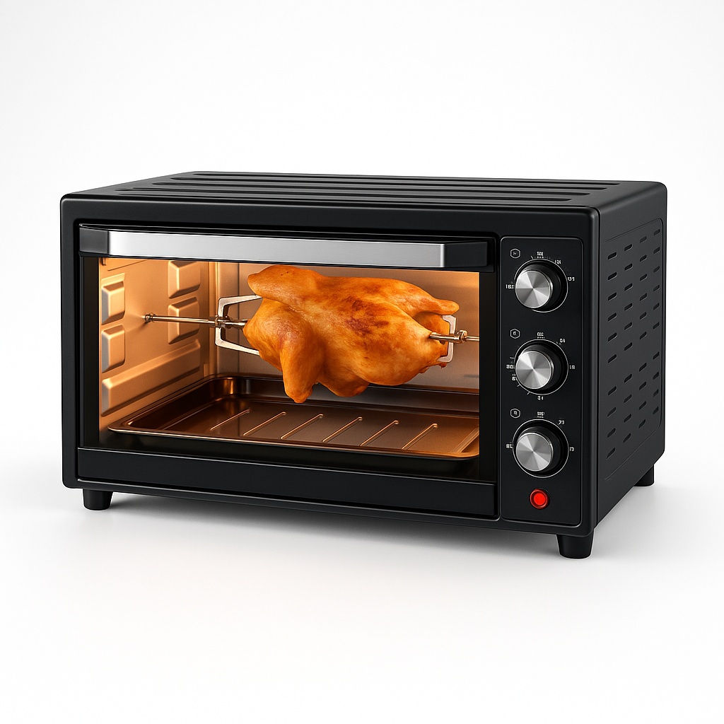 Crompton Tandoori Magic 45L oven. Stainless steel body, 2000W power, mechanical knob control. 2-year warranty.