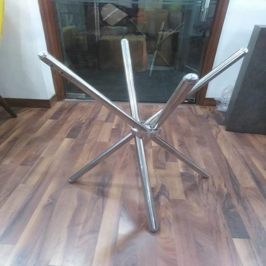 Stainless steel table stand with cross legs for restaurants. Height up to 2.5 feet, silver color, minimum order quantity of 10.