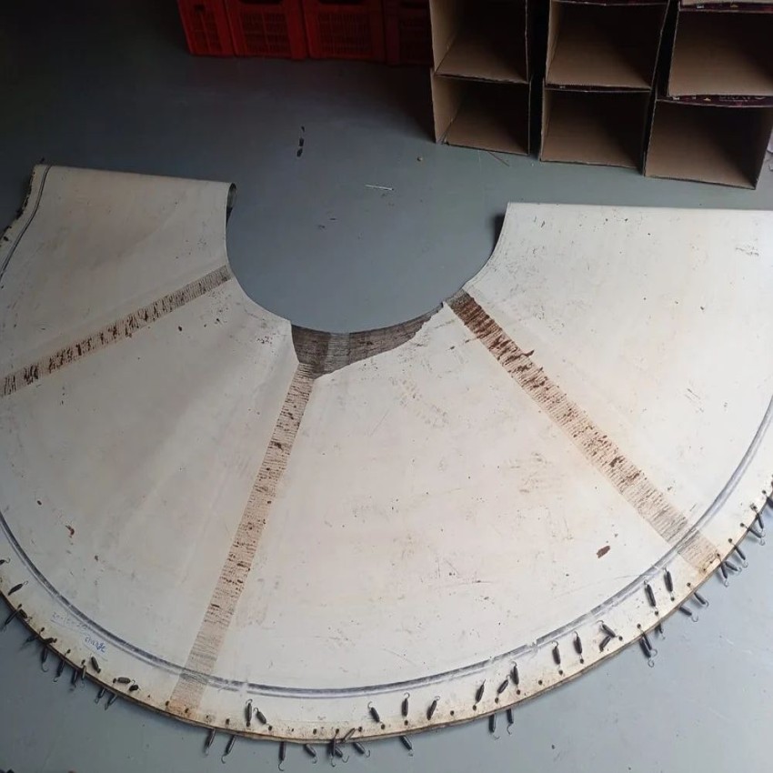 A curve belt conveyor with a 50 kg capacity, manufactured in India. Ideal for transporting goods around corners, this equipment ensures efficient product flow.