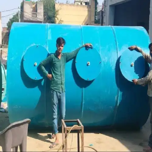 Blue curved underground FRP tank for water storage. Capacity 2001-5000 L. Made in India.