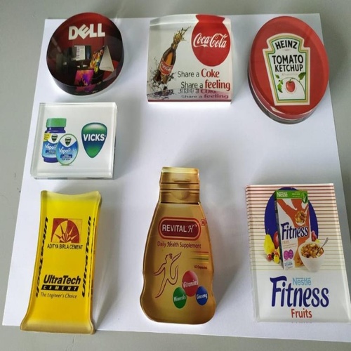 Customizable transparent acrylic paperweights, 80x55mm. Ideal for corporate gifts. Any shape can be customized. Minimum order quantity of 200 units.