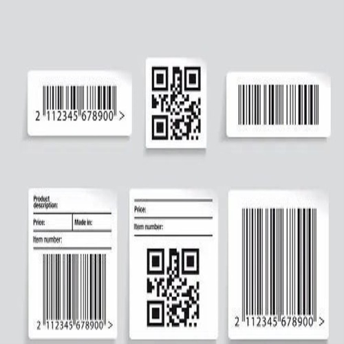 Custom white barcode label, supplied on a roll, designed for industrial usage. Provides clear and durable labeling for products and packaging.