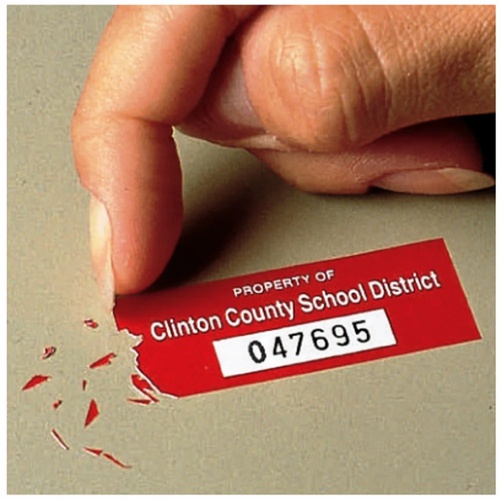 Customized multicolor PVC destructible label on a roll. Single-sided adhesive, designed for garment applications. Made in India.