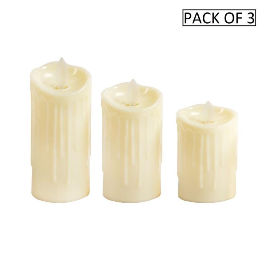 Cylindrical LED candle lights, lighting in yellow with a white finish. Made in India. Minimum order quantity of 50 units.