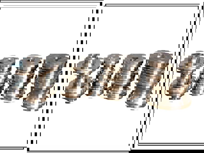 D-2 material tube mill roll set with CNC finish for steel pipe making. Hardness 58-60 HRC. Standard head shape, length, and color. Made in India.