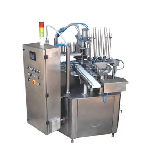 Industrial-grade curd filling machine for accurate dairy product dispensing. Robust construction for high-volume production.