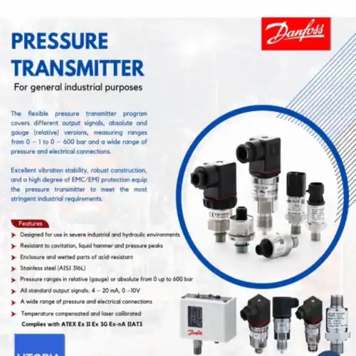 Pressure transmitter from Danfoss for reliable pressure measurement. Engineered for industrial applications. Provides accurate and consistent readings for process control.