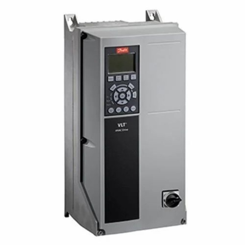 DANFOSS VFD FC360 AC Drive, 5.5 kW motor power, 415V input, three-phase. Features back channel cooling and integrated brake chopper for low harmonics.