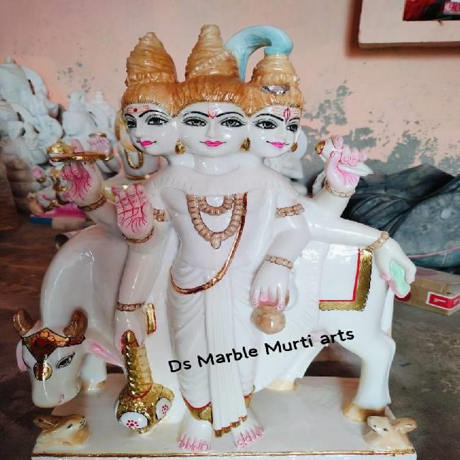 Dattatrey white marble idol, 1.5 feet in size. This elegantly sculpted murti is perfect for worship and home decor, showcasing fine craftsmanship in white marble.