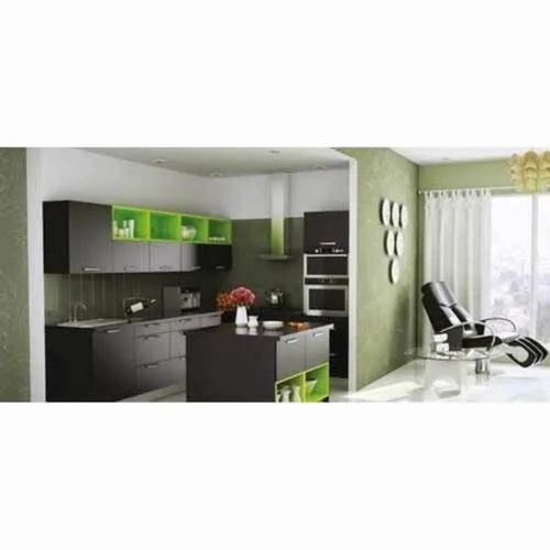 Decorative modular kitchen set with drawer slides and artificial marble countertop. Door panels feature acrylic finish. Minimum order quantity: 10 sets.