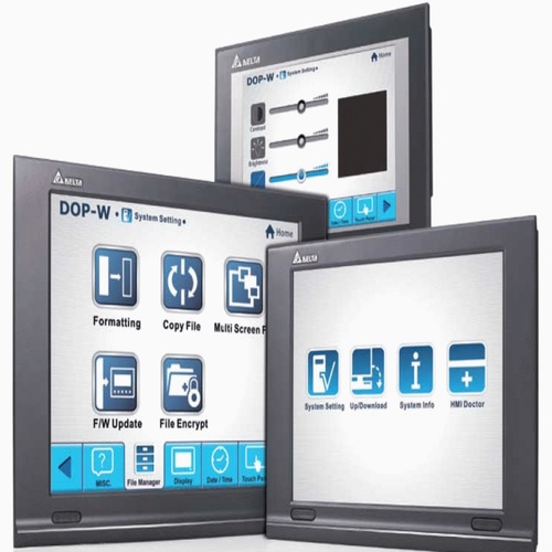 Delta DOP-W Series HMI with a 1024x768 resolution and 65536 color TFT display. Features USB, Ethernet, SDHC, audio/video, and aluminum enclosure. Fully automatic operation.