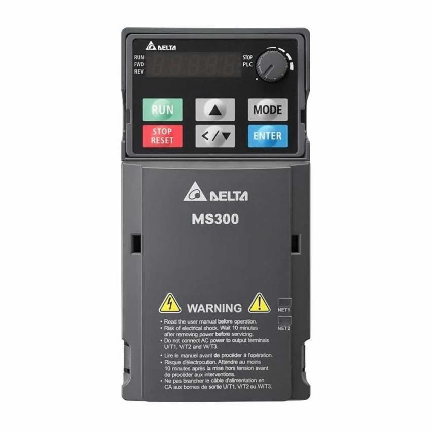 Delta MS300 Series VFD AC Drive, 3HP, 240V. IP20 enclosure, Frame Size C2. Features DC Injection and Dynamic Braking. HD 11 Amp, ND 12.5 Amp.