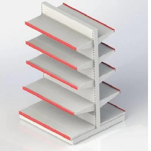 Plastic gondola unit for departmental stores, featuring 5 shelves with a 50 Kg tolerance capacity. Ideal for organized product display.