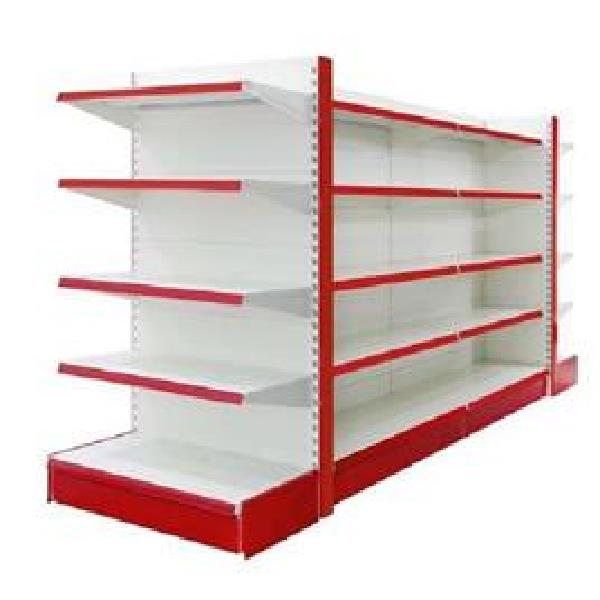 Powder-coated mild steel racking unit for supermarkets. Features 5 shelves, 6 ft height, and 100 Kg weight capacity. Size: 6' H x 3' W x 1.5' D.