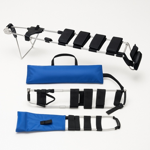 Aluminum alloy traction splint designed for hospital use. Features a robust construction for effective patient immobilization. Model STAC 101 ensures reliable performance in clinical settings.